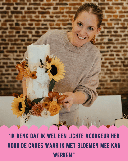 De taarten voor haar dochter zijn haar dierbaarst. "Daarin kan ik echt out of the box denken." Ook haar eigen bruidstaart noemt ze als hoogtepunt. Favoriet zijn cakes met bloemen en cake magnums: "Daar kun je zó veel mee qua smaken."